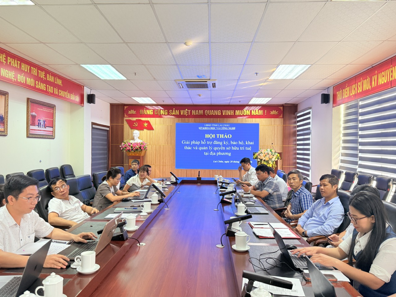 Tham dự và chủ trì hội thảo có Thạc sĩ Trần Văn Tuấn – Phó Giám đốc Sở Khoa học và Công nghệ; cùng đại diện lãnh đạo các phòng, ban chuyên môn trực thuộc. Về phía Bộ Khoa học và Công nghệ có Tiến sĩ Lê Tất Chiến – chuyên gia trong lĩnh vực sở hữu trí tuệ. Ngoài ra, hội thảo còn có sự góp mặt của đại diện các sở, ngành liên quan như Nông nghiệp và Môi trường, Công Thương, Văn hóa, Thể thao và Du lịch; Liên hiệp các Hội Khoa học và Kỹ thuật tỉnh, Hội Nông dân, Liên minh Hợp tác xã; đại diện UBND các xã, phường.