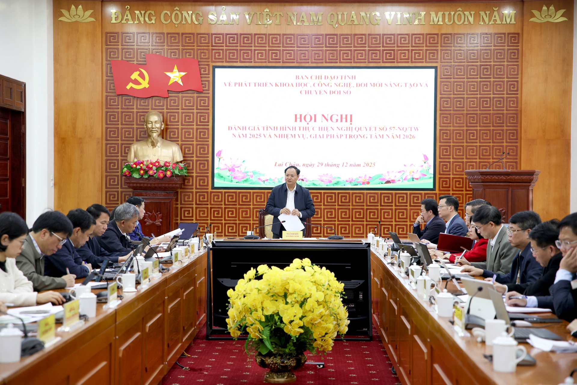 Theo đó, năm 2025, Tỉnh ủy và các cấp ủy đảng, chính quyền tăng cường lãnh đạo, chỉ đạo đẩy mạnh tuyên truyền, quán triệt và cụ thể hóa Nghị quyết số 57 và các nghị quyết, văn bản liên quan. Tỉnh thành lập Ban Chỉ đạo tỉnh thực hiện Nghị quyết số 57; thành lập, kiện toàn Ban Chỉ đạo về phát triển khoa học, công nghệ, đổi mới sáng tạo, chuyển đổi số và triển khai Đề án 06; thành lập 3 tổ công tác giúp việc cho các ban chỉ đạo. Ban Chỉ đạo Chuyển đổi số tỉnh Lai Châu đã ban hành trên 35 văn bản kịp thời cụ thể hóa Thông báo kết luận của Tổ giúp việc, Cơ quan Thường trực Ban Chỉ đạo, Ban Chỉ đạo Trung ương; tập trung lãnh đạo, chỉ đạo, giao nhiệm vụ cụ thể đến từng cấp ủy, tổ chức đảng, cơ quan, đơn vị theo phương châm “rõ người, rõ việc, rõ trách nhiệm, rõ tiến độ, rõ kết quả”. Trong năm 2025, toàn tỉnh đã ban hành 41 quyết định công bố 543 Thủ tục hành chính (TTHC) nội bộ.