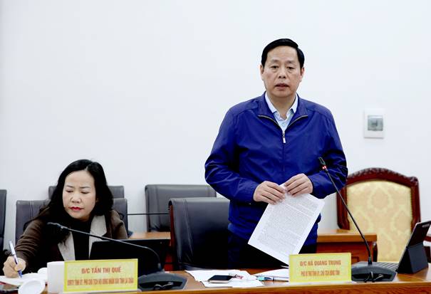 Đồng chí Hà Quang Trung - Phó Bí thư Tỉnh uỷ, Chủ tịch UBND tỉnh, Phó trưởng Thường trực Ban Chỉ đạo thực hiện Nghị quyết số 57 tỉnh phát biểu tại hội nghị.
