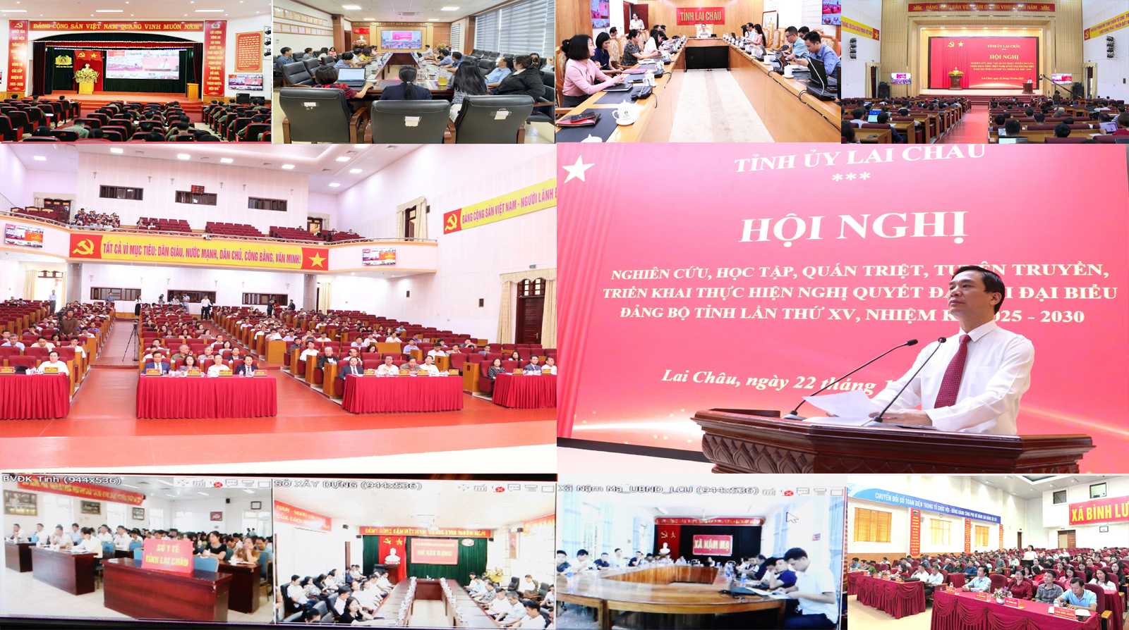 Đồng chí Lê Văn Lương - Phó Bí thư Tỉnh ủy, Chủ tịch UBND tỉnh đã quán triệt chuyên đề triển khai Chương trình hành động của Tỉnh ủy thực hiện Nghị quyết Đại hội Đảng bộ tỉnh lần thứ XV. Chương trình hành động đã xác định 4 nhóm nhiệm vụ, 3 khâu đột phá chiến lược, 6 nhóm giải pháp chủ yếu; ban hành 13 nghị quyết chuyên đề, 2 đề án, 2 kết luận, 1 chỉ thị và danh mục các nhiệm vụ trọng tâm, công trình, dự án lớn trong giai đoạn 2025 - 2030, tạo khung hành động cụ thể, khả thi, có tính liên kết vùng và tầm nhìn dài hạn. Các công trình trọng điểm như cao tốc CT13 Bảo Hà - Lai Châu, hầm Hoàng Liên, Cảng hàng không Lai Châu, khu kinh tế Ma Lù Thàng, các khu du lịch sinh thái và khu công nghiệp trọng điểm... sẽ là động lực thúc đẩy phát triển đột phá cho tỉnh trong giai đoạn tới.