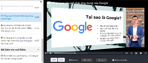 • Bạn sẽ thấy: Mô tả, Mục tiêu học tập, Thời lượng, Nội dung từng bài học