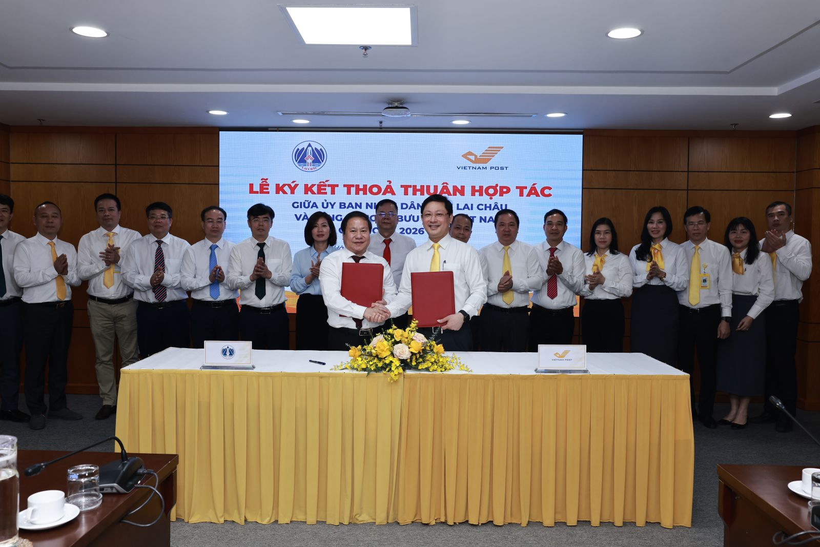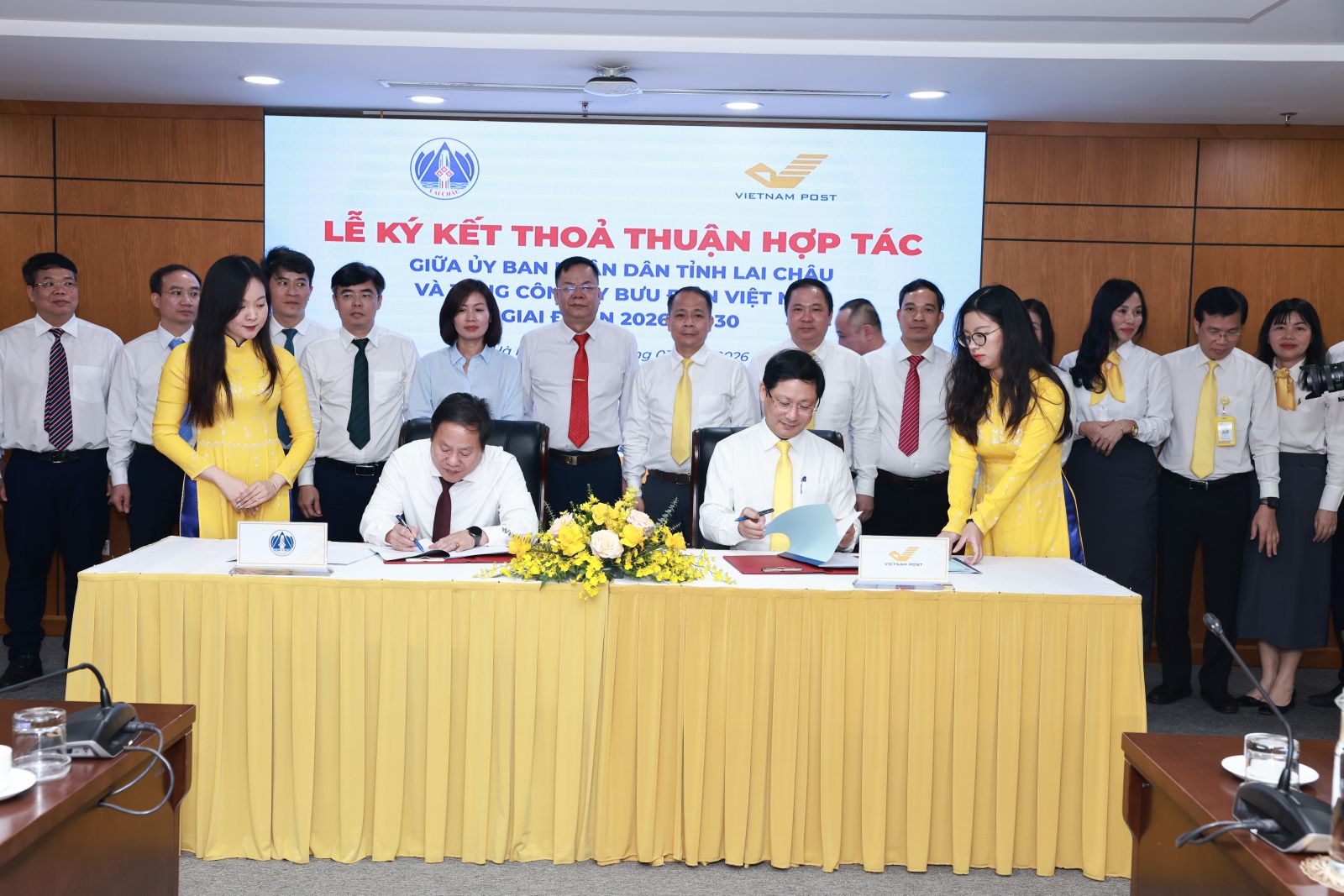 Về phía Tổng Giám đốc Tổng công ty Bưu điện Việt Nam có các đồng chí Chu Quang Hào - Tổng Giám đốc; Nguyễn Kiên Cường - Phó Tổng Giám đốc; Trần Anh Sơn - Giám đốc Bưu điện tỉnh Lai Châu và lãnh đạo các Phòng chuyên môn thuộc Bưu điện tỉnh Lai Châu.