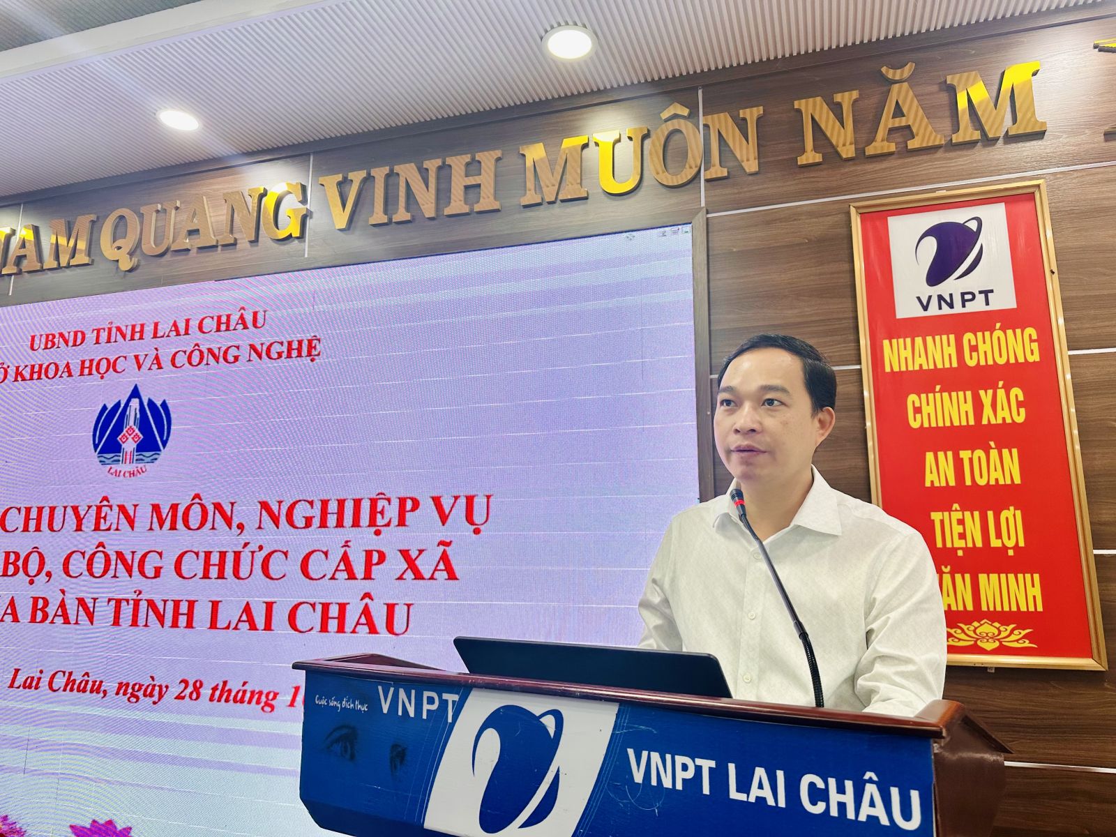 Tham dự lớp tập huấn tại điểm cầu VNPT Lai Châu có Thạc sỹ Phạm Quang Cường - Phó Giám đốc Sở Khoa học và Công nghệ, đại diện các phòng chuyên môn thuộc Sở: Phòng quản lý tiêu chuẩn đo lường chất lượng; phòng quản lý khoa học và công nghệ; phòng bưu chính viễn thông công nghệ thông tin…, đại diện cán bộ chuyên môn thuộc 2 phường Đoàn Kết và Tân Phong.