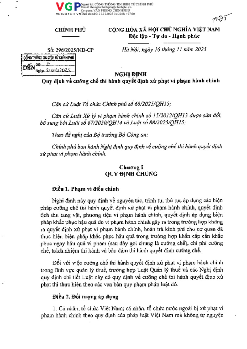 | Số hiệu | 296/2025/NĐ-CP | Cơ quan ban hành | |