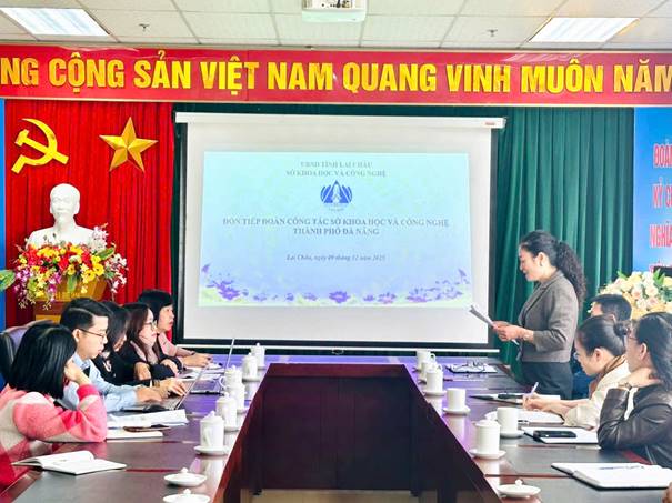 Tiếp và làm việc với đoàn có đồng chí Trần Văn Tuấn - Phó Giám đốc Sở Khoa học và Công nghệ; đồng chí Bùi Thị Lệ Dung - Phó Giám đốc Sở Khoa học và Công nghệ tỉnh Lai Châu cùng lãnh đạo các phòng, đơn vị thuộc Sở.