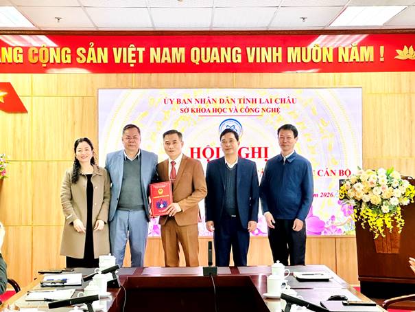 Tại hội nghị, đồng chí Phạm Quang Cường – Phó Giám đốc Sở KH&CN đã công bố Quyết định số 246 /QĐ- SKHCN ngày 09/22026 của Chủ tịch UBND tỉnh Lai Châu về việc giao quyền Giám đốc Trung tâm Đổi mới sáng tạo và Chuyển đổi số cho đồng chí Lê Bá Ngọc – Phó Giám đốc Trung tâm ĐMST&CĐS.