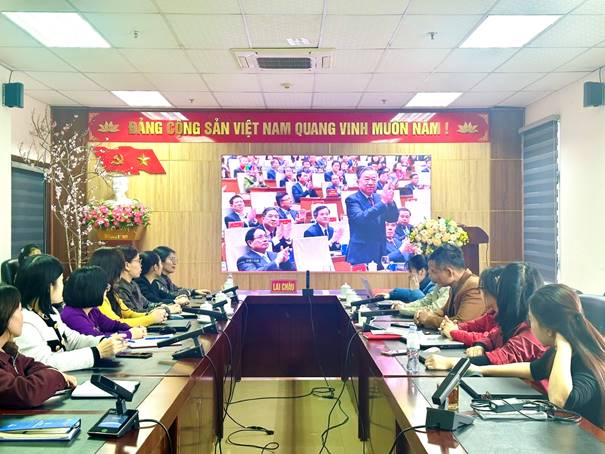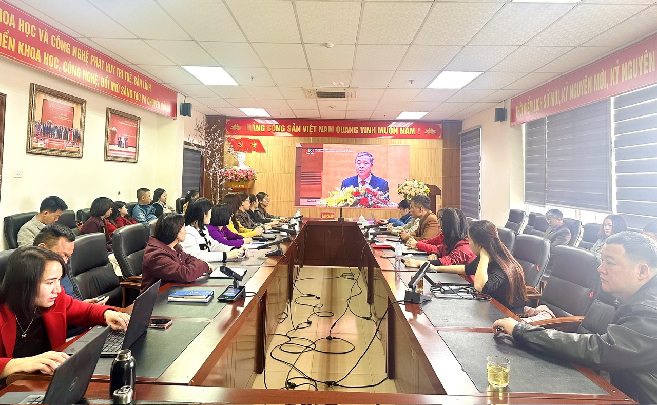 Công chức, viên chức, người lao động trong Sở Khoa học và Công nghệ tỉnh tham dự hội nghị tại điểm cầu Sở KH&CN (tầng 6 nhà D khu Hành chính – Chính trị).