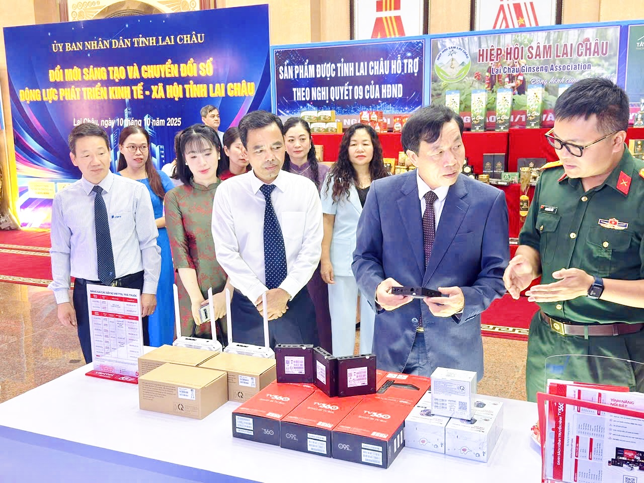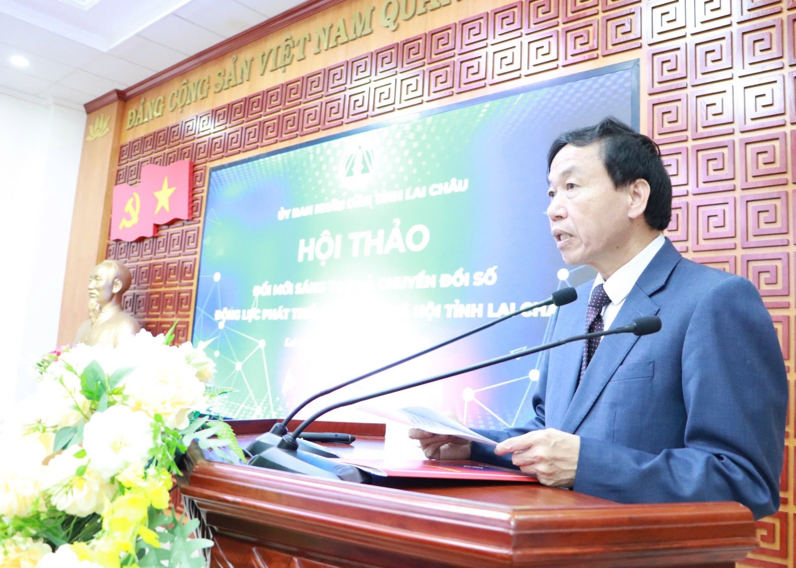 Phát biểu khai mạc hội thảo, Chủ tịch UBND tỉnh Lê Văn Lương khẳng định: Đổi mới sáng tạo và chuyển đổi số là xu thế tất yếu, là yêu cầu khách quan trong phát triển kinh tế - xã hội, nhất là đối với tỉnh Lai Châu, địa phương có vị trí chiến lược quan trọng về quốc phòng, an ninh và chủ quyền biên giới quốc gia. Thời gian qua, tỉnh đã ban hành nhiều chính sách thúc đẩy chuyển đổi số, nổi bật Nghị quyết số 09-NQ/TU ngày 25/2/2025 của Ban Chấp hành Đảng bộ tỉnh về chương trình chuyển đổi số tỉnh Lai Châu giai đoạn 2021-2025 định hướng đến 2030, Chỉ thị số 20-CT/TU ngày 08/06/2023 của Ban Thường vụ Tỉnh ủy về tăng cường công tác lãnh đạo, chỉ đạo thực hiện “Đề án phát triển ứng dụng dữ liệu về dân cư, định danh và xác thực điện tử, phục vụ chuyển đổi số quốc gia giai đoạn 2022-2025, tầm nhìn đến năm 2030”. Cùng với đó, tỉnh đã thành lập tổ công nghệ số cộng đồng tại các xã, thôn, bản, hỗ trợ người dân sử dụng điện thoại thông minh, tiếp cận dịch vụ công trực tuyến. Cùng với đó, đào tạo kỹ năng số và thương mại điện tử cho hàng chục nghìn người dân, đưa gần 2.000 sản phẩm nông sản lên sàn thương mại điện tử, tạo cơ hội phát triển mới cho người dân và doanh nghiệp.