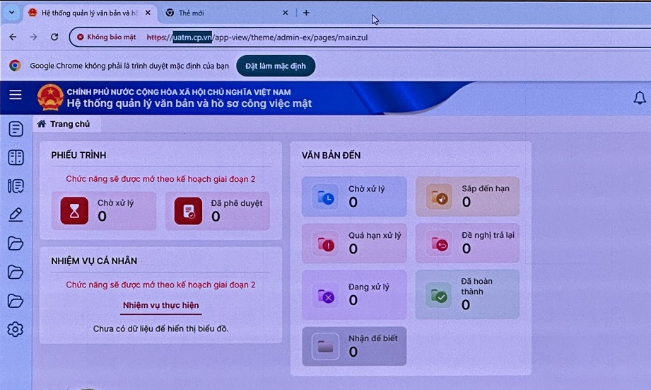 Trang Hệ thống QLVB&HSCV mật của Chính phủ