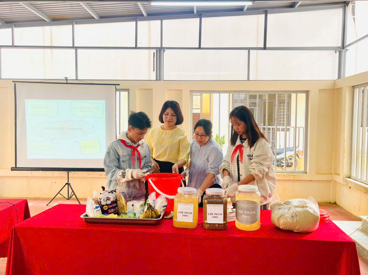Các em được trực tiếp hướng dẫn thực hành cách tạo chế phẩm IMO dạng lỏng và dạng rắn. Nội dung truyền đạt không chỉ dừng ở lý thuyết mà còn gắn với thực tiễn tại gia đình và môi trường xung quanh, giúp học sinh nhận diện rõ tiềm năng ứng dụng trong đời sống hằng ngày.