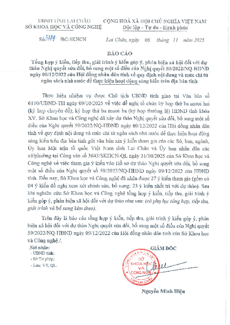 | Tiêu đề văn bản | Báo cáo giải trình ý kiến góp ý dự thảo Nghị quyết sửa đổi bổ sung một số điều của Nghị quyết 59/2022/NQ-HĐND ngày 09/12/2022 | ||